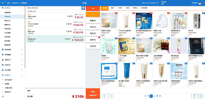 总部管理: 商品,套餐,会员,进存销等多项功能;门店管理、切换、指定门店共用商品。